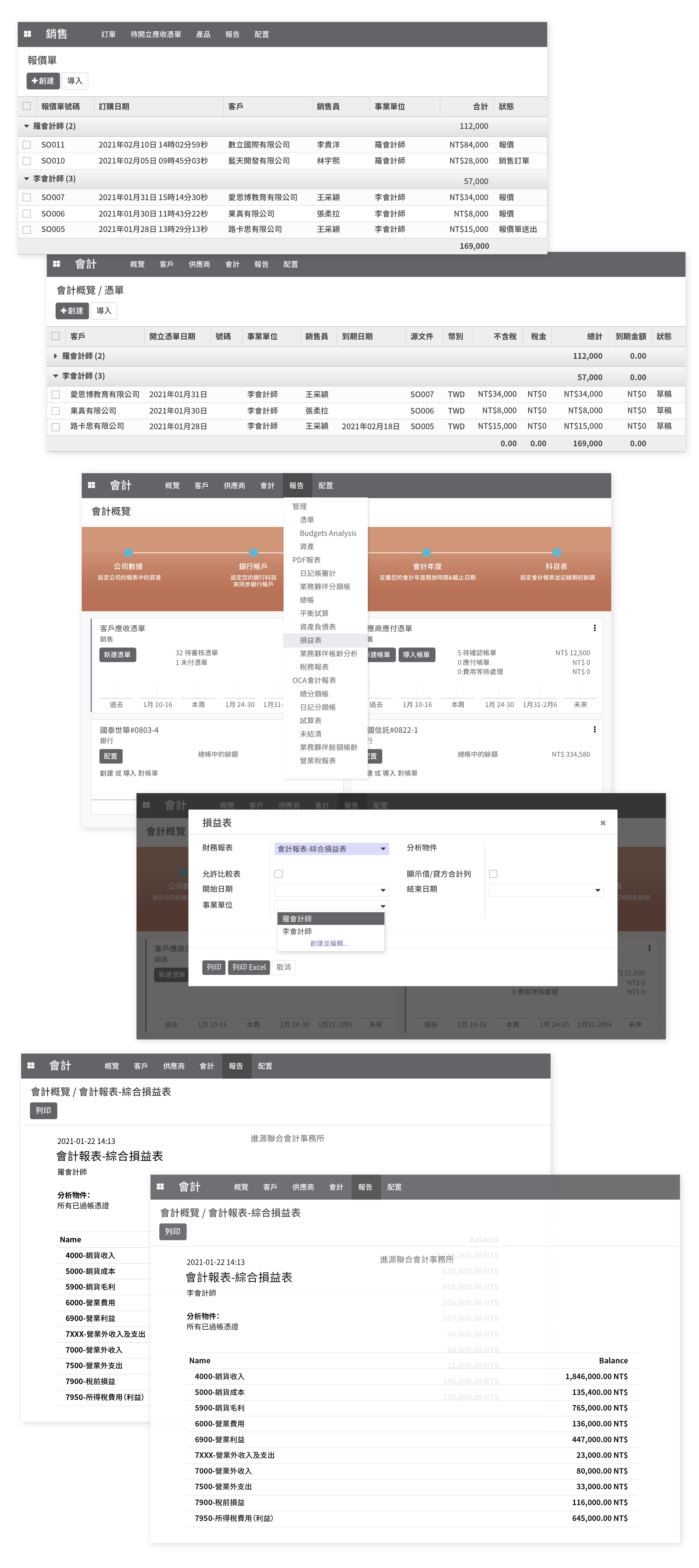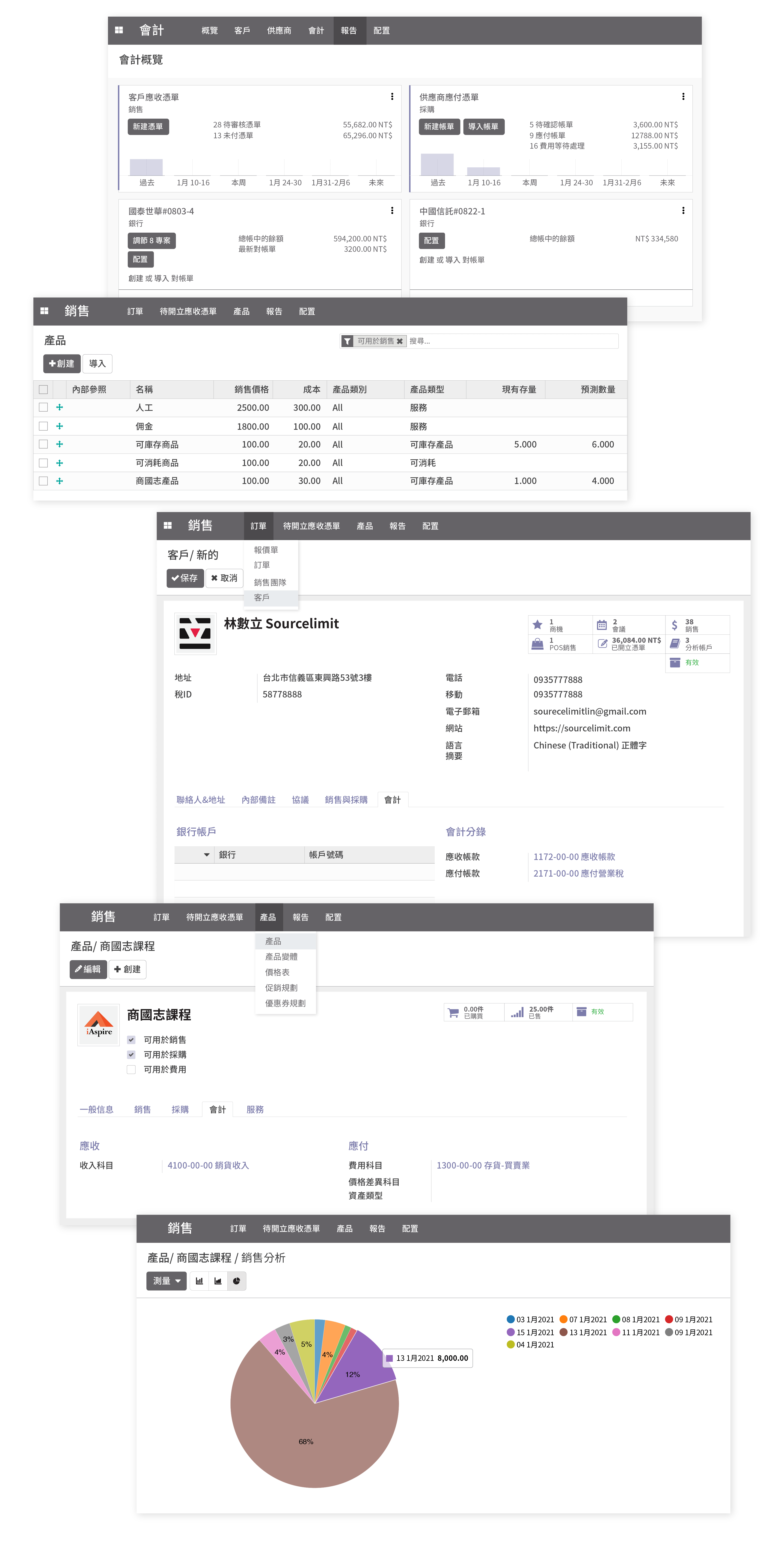 一個企業中不同的事業單位,利用事業單位模組的功能,可以輕鬆看到單一或合併事業體的運營狀況;不同業務單位的產品和員工經過綁定,彼此也無法相互窺探系統資訊,但當企業主需要判斷資源分配比重時,仍能隨時掌握各事業單位個別的收入/成本/利潤,不需要會計再花時間重新整理編製,能立即產⽣各自的財務報表來分析,非常適⽤多角化經營公司或擁有數個不同分店的規模企業。