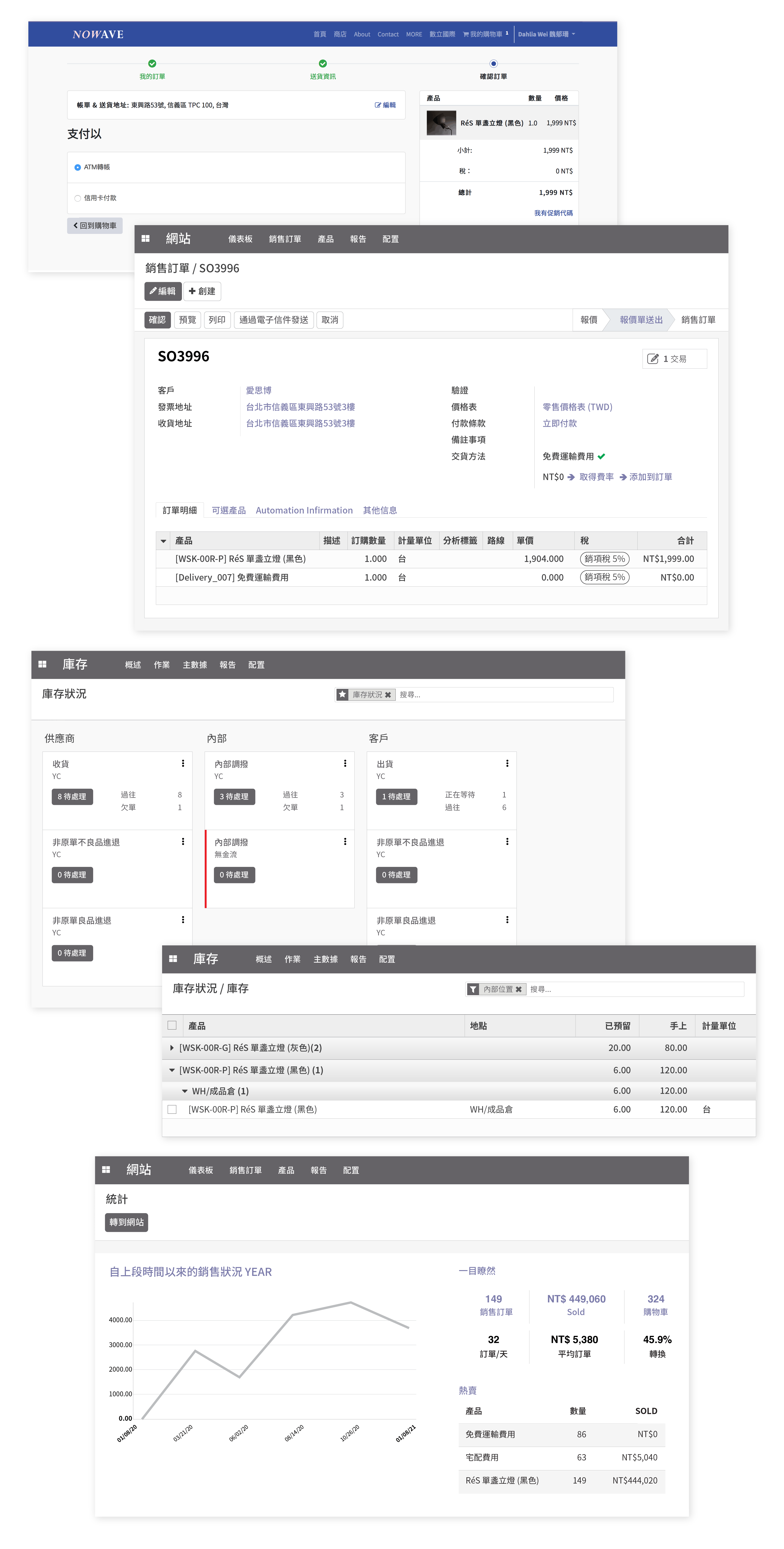 透過友善且多樣化的電子商務平台介面,消費者在購物網站下單後,可直接採用線上金流支付,後台自動產生訂單並通知倉庫出貨,一站式同步完成進銷存管理,免除傳統ERP在前端銷售,還需要拋轉至後台軟體的使用窘境;多樣的網站模組擴充容易,即使快速成長中的企業,也不會面臨系統淘汰的問題,適合所有需要透過網路行銷的產業。